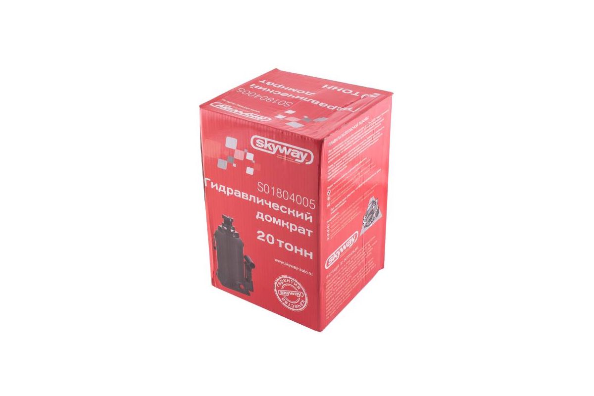 Домкрат гидравлический бутылочный 20т h 235-440мм SKYWAY с клапаном в коробке+сумка S01804005