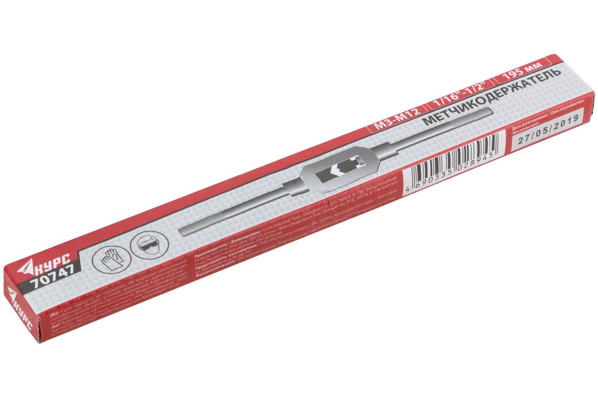 - Метчикодержатель оснащен регулируемым винтовым механизмом для надежной фиксации хвостовиков метчиков М3-М12;