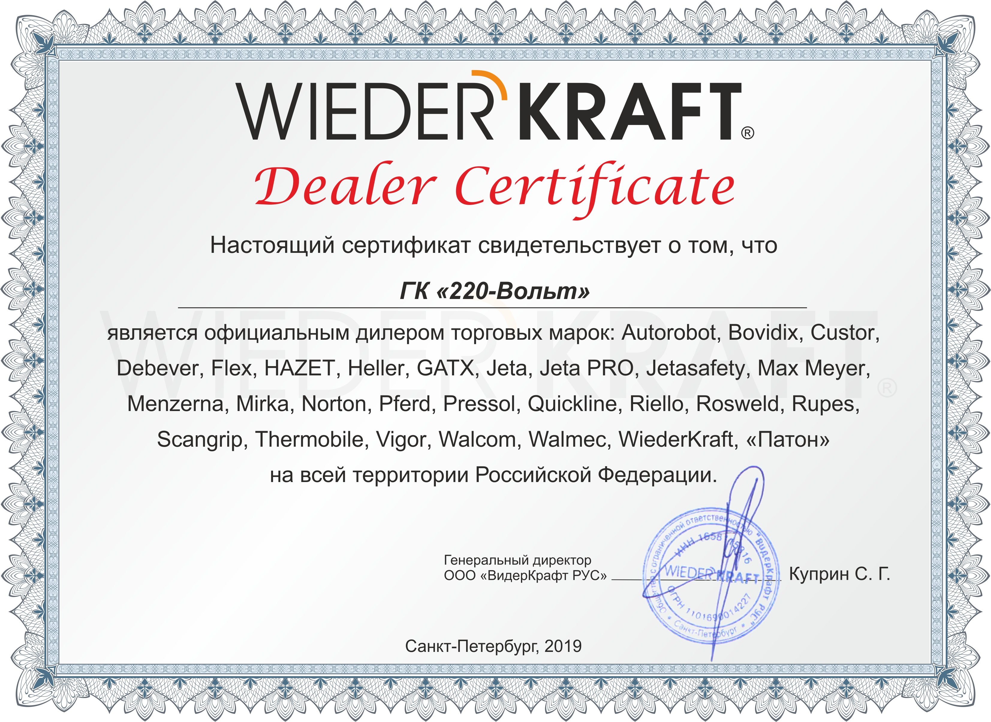 Под брендом Wiederkraft выпускается полный спектр оборудования для авторемонтных мастерских: от шлифовальных машин до сварочных аппаратов, домкратов и гаражных кранов. Все технологии разработаны экспертами из Германии. Производство – совместно с партнерскими предприятиями Юго-Восточной Азии.